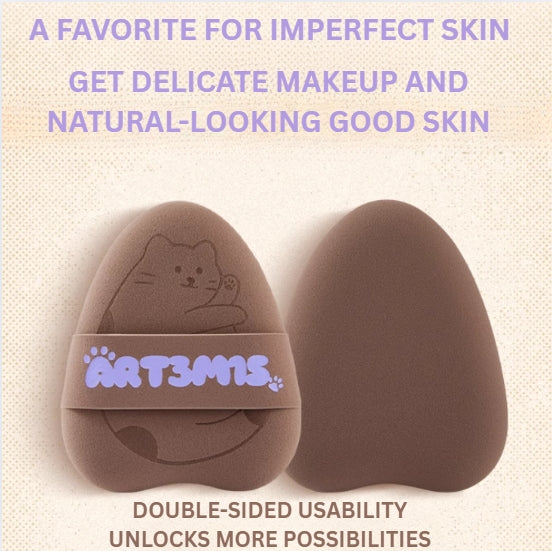The ART3M1S Brown Baby Makeup Applicator is a uniquely shaped, soft-textured puff designed for precise powder application in hard-to-reach areas like the sides of the nose, under-eye zone, and corners of the face. Its elastic, non-abrasive material distributes powder evenly without disturbing foundation or concealer underneath. The cat ear-inspired edges allow for controlled, detailed application—making it an ideal tool for both beginners and professionals who value speed and accuracy.